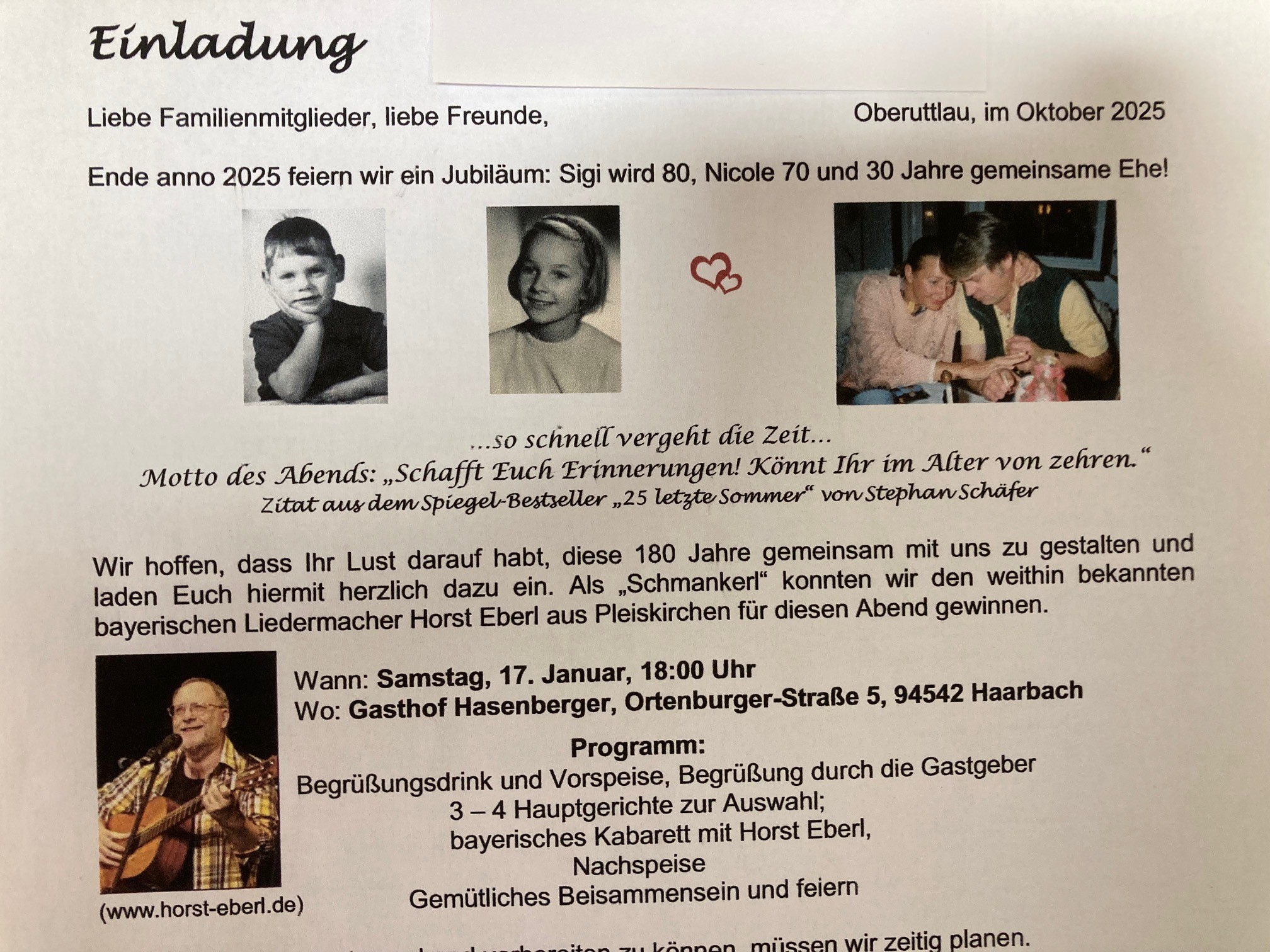 Liebe Nicole, lieber Sigi, wir bedanken uns recht herzlich bei euch beiden für die jahrelange Unterstützung -