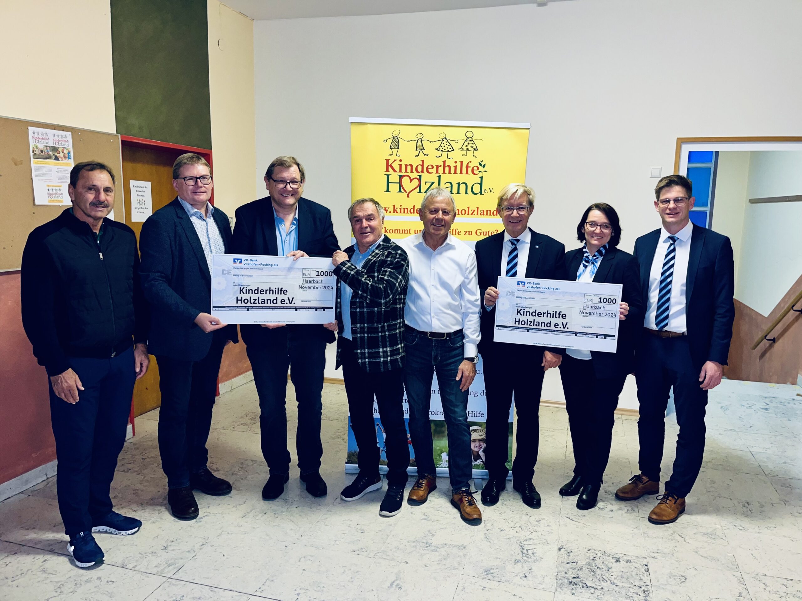 Die feierliche Übergabe fand in den Räumlichkeiten der Kinderhilfe Holzland statt. Neben Klaus Prähofer und den Vorständen der VR-Bank waren der Vereinsvorstand Peter Stuiber, der Haarbacher Bürgermeister Franz Gerleigner sowie die Aufsichtsräte Robert Sammereier und Georg Bauer vor Ort.