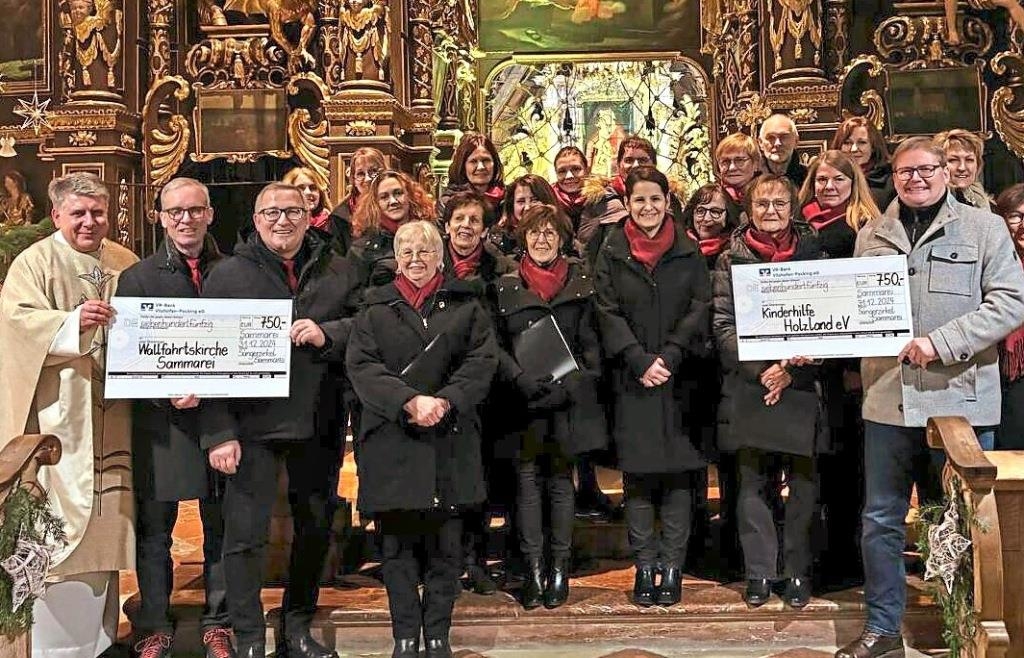 Für die Kinderhilfe Holzland nahmen Haarbachs Bürgermeister Franz Gerleigner und seine Frau Claudia den Scheck über 750 Euro entgegen. Auch die Sammareier Wallfahrtskirche ist auf Spenden angewiesen und so konnte sich Pfarrer Wojciech Mazur ebenfalls über eine Zuwendung über 750 Euro freuen.