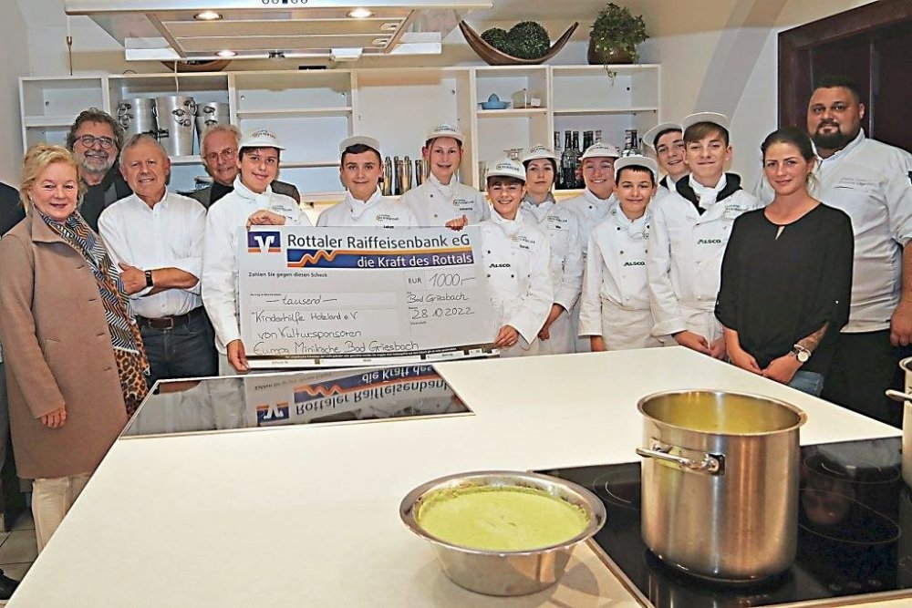 Bad Griesbach. Die Freude war groß, als die Europa-Miniköche im AktiVital Hotel in Bad Griesbach einen Spendenscheck über 1000 Euro an die "Kinderhilfe Holzland" übergaben.
