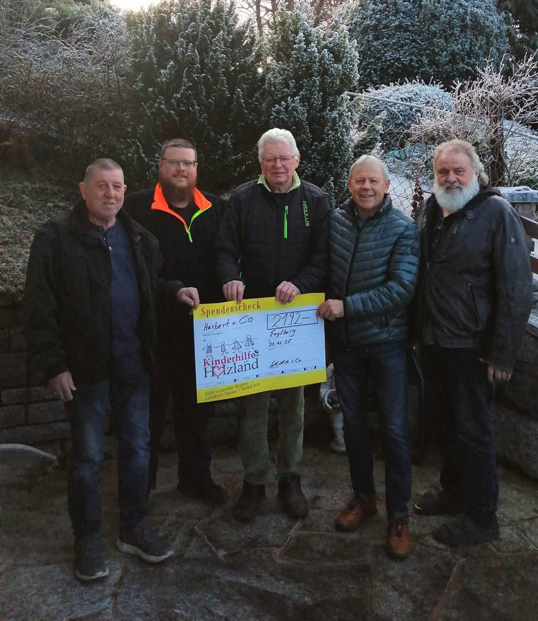 17,1 Tonnen Kronkorken und Aluverschlüsse für 2025 Herbert Schneider aus Englburg/Tittling hat dieses Jahr mit dem sammeln reduzieren müssen. Jupp Tangeten, Bernhard Faschingbauer und Marcel Vogl übernahmen einen Großteil der Sammelaktion. Aber ganz kann ich es doch nicht lassen sagte Herbert Schneider. Es ist nach acht Jahren sammeln zur Leidenschaft geworden und freue mich immer wieder mit dieser Aktion Menschen helfen zu können und auch die Umwelt zu schonen. In diesem Jahr 2025 kamen 17,1 Tonnen zusammen und wir konnten der Kinderhilfe Holzland 2.192 Euro übergeben. Wir möchten uns bei allen Sammelstellen und Sammlern recht herzlich bedanken. Das sammeln geht auch 2026 weiter, Wenn Interesse besteht, bei uns im Lager mit zu helfen, (stundenweise, Annahme, sortieren, Abtransport) usw. bitte bei Herbert Schneider 0175-25 27 92 0 melden. Wir wünschen euch schöne Feiertage und ein gesundes und erfolgreiches neues Jahr. Herbert Schneider, Jupp Tangeten, Bernhard Faschingbauer, Marcel Vogl. Bild von links: Bernhard Faschingbauer, Marcel Vogl, Herbert Schneider, Peter Stuiber (Vorstand der Kinderhilfe Holzland) Jupp Tangeten -