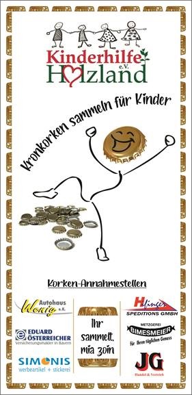 Frank König aus Malching hatte in den vergangenen 2 Jahren die Aktion "Korken für Kinder" ins Leben gerufen. Jeder konnte Kronkorken sammeln und bei ihm abgeben. Firmen sponserten pro 1000 Kronkorken. DIE AKTION geht nun in Pocking weiter !! Dank der Firmen Metzgerei Bimesmeier Versicherungsbüro Österreicher Spedition Hifinger Werbeartikel Simonis Josef Gottlieb Autohaus Wenig kommen nun über 3500.- Euro an Spende für die Kinderhilfe Holzland zusammen, wenn 1 Million Kronkorken gesammelt und bei den o.g. Sponsoren abgegeben werden. Gern könnt ihr als Verein o.ä. zur Abgabe kommen, wir machen ein Foto und ihr könnt das auf Facebook, eurer Homepage o.ä. posten. Tut GUTES und sammelt Kronkorken. Beim Autohaus Wenig steht ein Schrottcontainer, der, wenn er fast voll ist, eben mit 1 Million Kronkorken befüllt sein wird. (wir machen einen Strich rein) In der PNP und in den sozialen Netzwerken wird die Aktion stark beworben werden. Ich informiere euch vorab. Starten werden wir in 2 Wochen. Und ich bin mir sicher, wir werden auch nach einer Million nicht aufhören. In 2 Wochen gehts los !