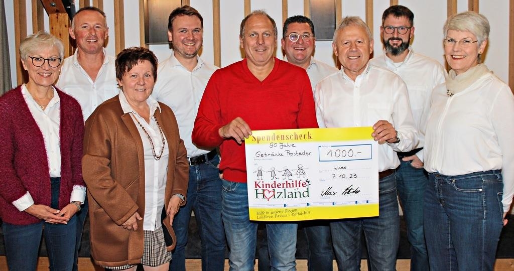 Zu diesem besonderen Anlass gab es in Wies ein großes Jubiläumsfest mit zünftiger Musik. Für Speis und Trank wurde natürlich bestens gesorgt. Fröhliche Kinderaugen gab es beim Kinderschminken und bei der großen Tombola. Max Prosteder wollte aber anlässlich seines Jubiläums keine Geschenke, sondern eine Spende für die Kinderhilfe Holzland. Das Geld geht an bedürftige Familien, damit sie wieder auf die Beine kommen. Dahinter steht die ganze Familie Prosteder und es waren sich auch alle einig: „Wenn wir spenden, dann an die Kinderhilfe.“ Ein Betrag von 700 Euro wurde von den Gästen gespendet und 300 Euro sponserte Kracherl Max dazu. Mit einer stolzen Summe von 1000 Euro konnte die Spende an die Kinderhilfe Holzland übergeben werden.