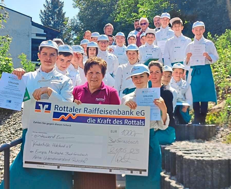 Die Themen, die das Projekt aufgreift, sind vielfältig: Ernährung, Umweltschutz, regionales Bewusstsein und auch der soziale Gedanke kommen nicht zu kurz. So haben die Miniköche bei verschiedenen Aktionen Geld gesammelt und spenden 1000 Euro davon an die Kinderhilfe Holzland. Stolz überreichten sie einen großen Scheck an die stellvertretende Vorsitzende Rosmarie Berger.